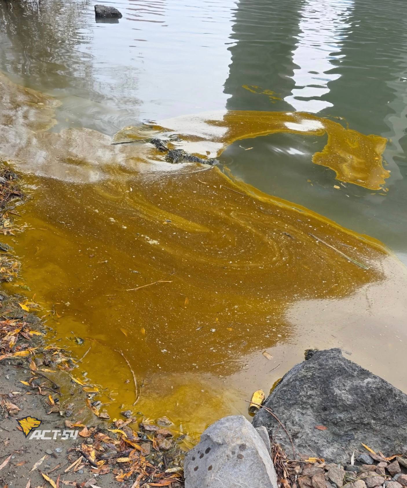 Коричневая маслянистая субстанция разлилась по реке Обь в Новосибирске
