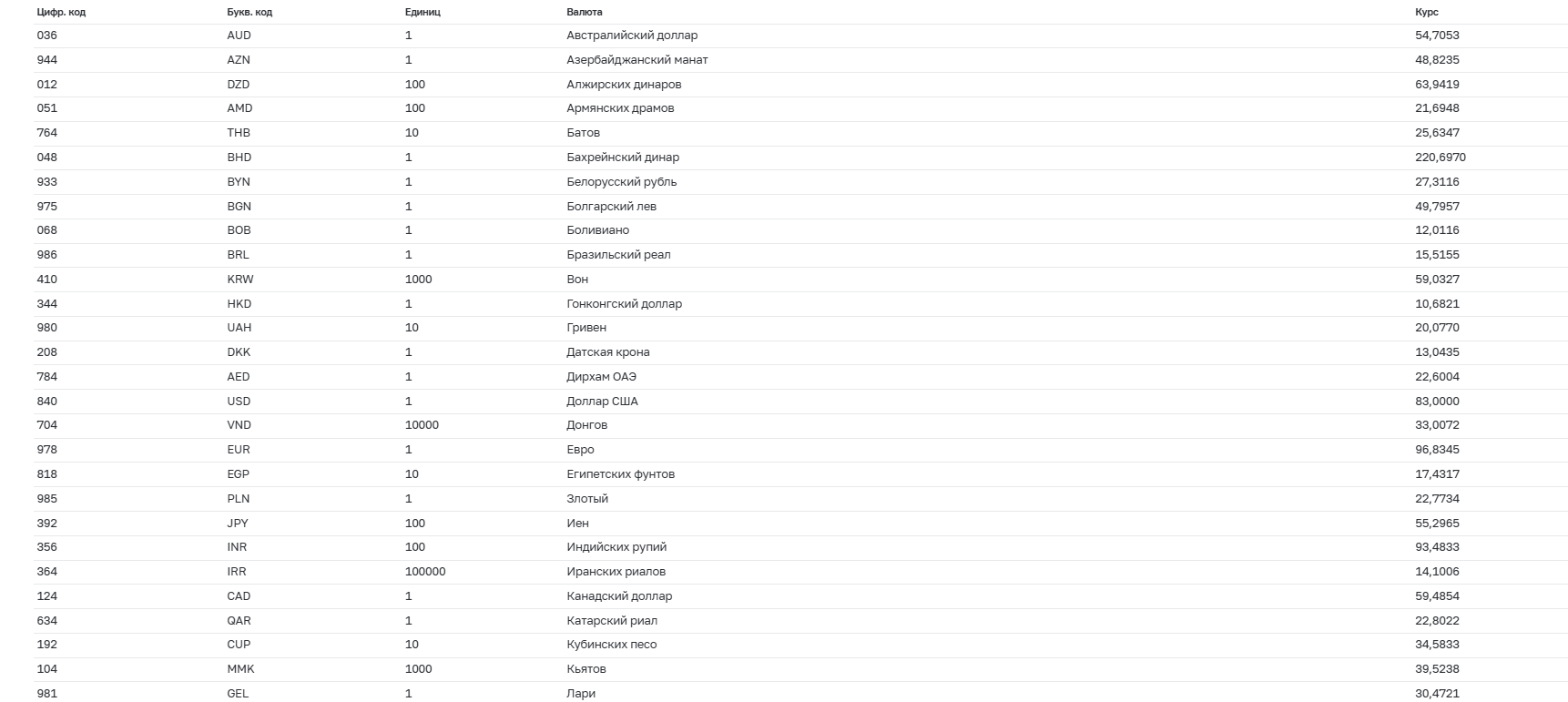 Курсы валют на конкретную дату обновляются ежедневно.