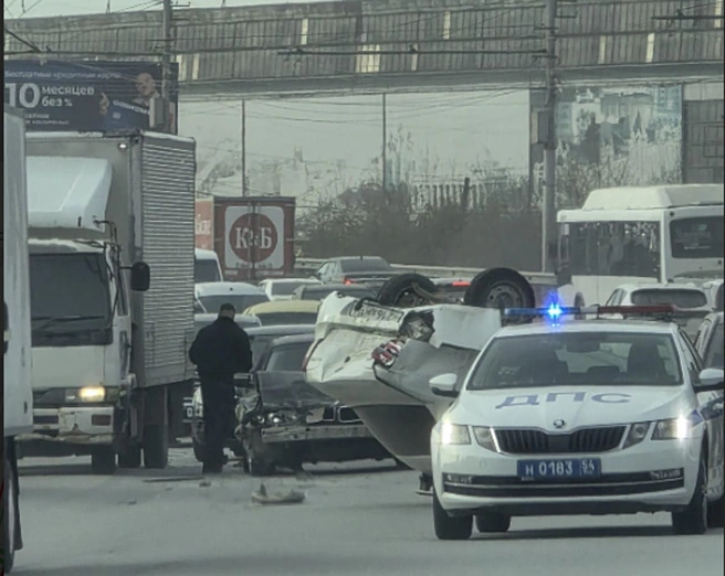 В Новосибирске на проезде Энергетиков перевернулась LADA после тройного ДТП