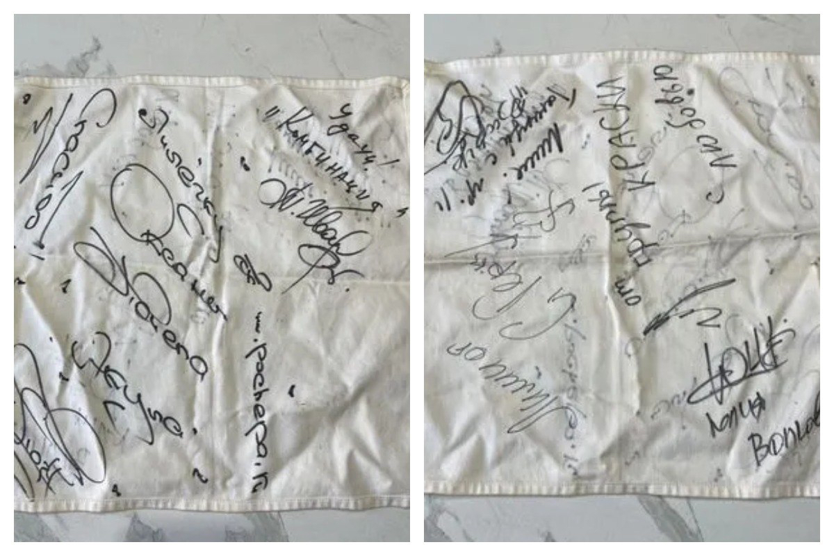Продавец утверждает, что данная салфетка является настоящей коллекционной ценностью, поскольку её подписали сами участники популярных тогда групп, среди которых также значатся коллективы «Комбинация», «Стрелки» и солистка Акула.