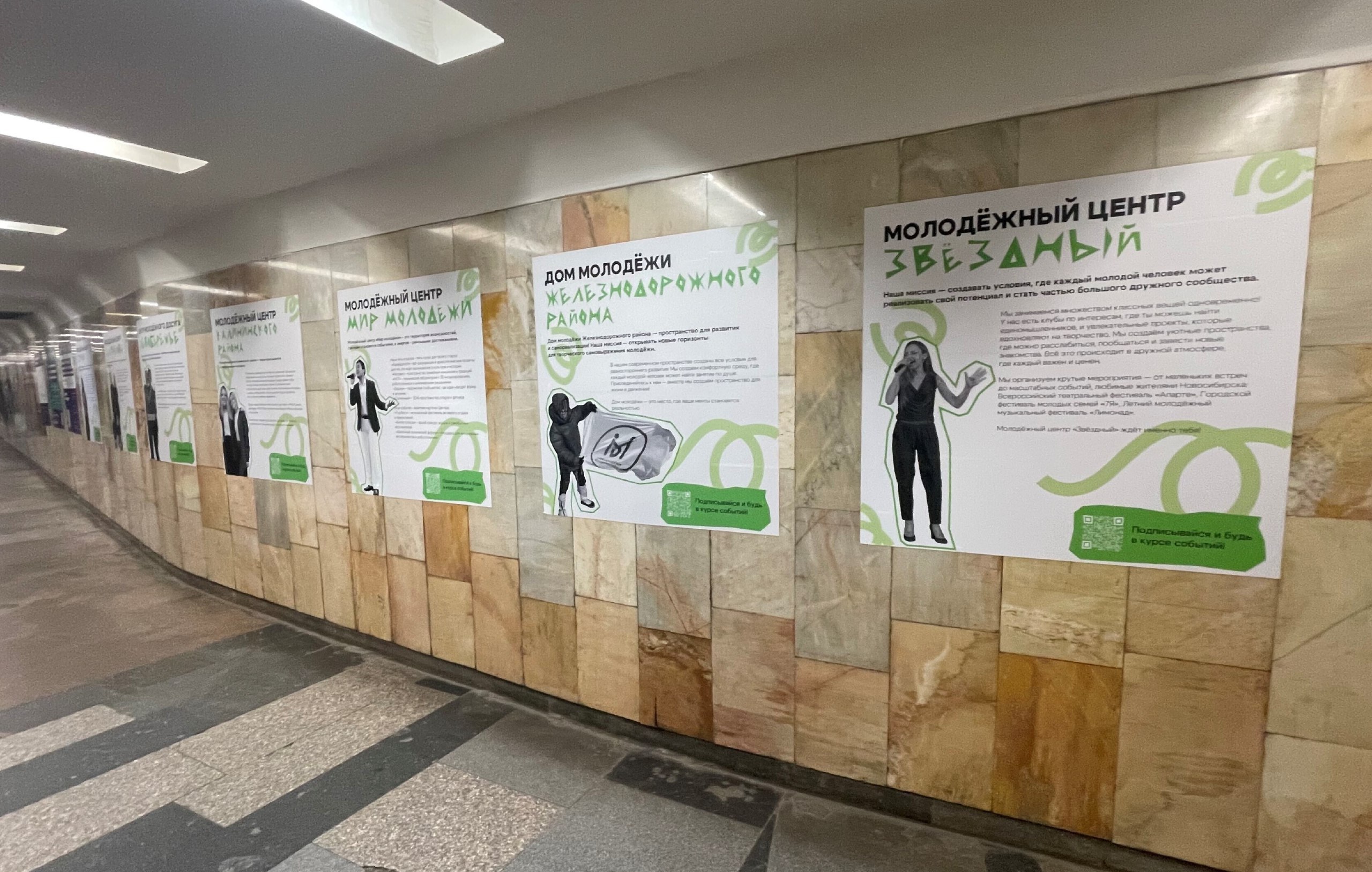 В переходе между станциями метро «Красный проспект» и «Сибирская» открылась фотоэкспозиция, посвящённая 35-летию молодёжной политики Новосибирска.