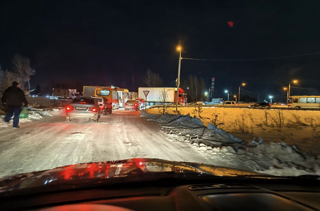 Буксующие фуры перекрыли выезд из посёлка Садовый под Новосибирском