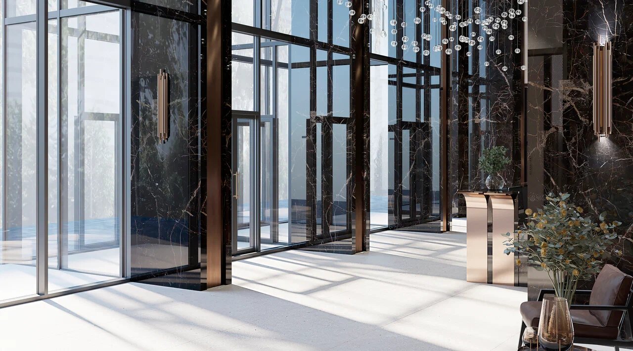Жильцов и гостей встречают просторные дизайнерские вестибюли по 116 квадратных метров, со впечатляющими 7-метровыми потолками. Квартирография ЖК рассчитана на семьи с разным составом и образом жизни: здесь представлены как классические планировки от 40 до 125 квадратных метров, так и квартиры с террасами, видовые пентхаусы и двухуровневые хайфлэты до 227 квадратных метров.