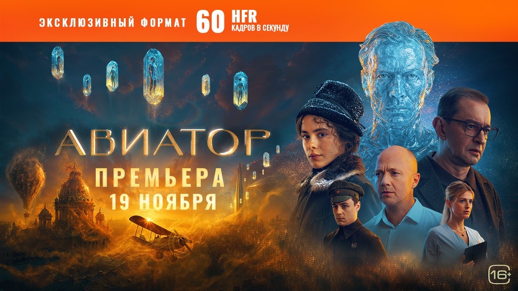 19 ноября в 19:30 кинотеатр «Формула Кино» ТРЦ «Аура» приглашает на премьерный показ масштабной фантастической драмы по роману Евгения Водолазкина «Авиатор» в эксклюзивном формате 60 кадров в секунду.