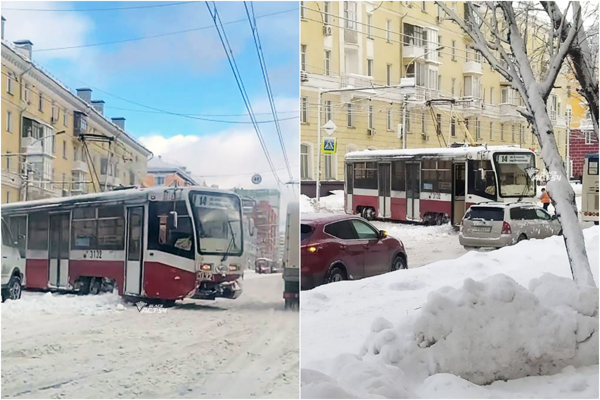 В Новосибирске с рельсов-невидимок сошли два трамвая