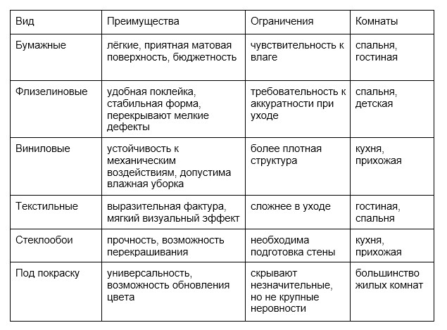 У каждого вида обоев есть собственный характер. Они различаются плотностью, поведением на стене и тем, как реагируют на свет. Рассмотрим наиболее распространённые материалы, чтобы понимать, в какие ситуации они вписываются лучше всего.