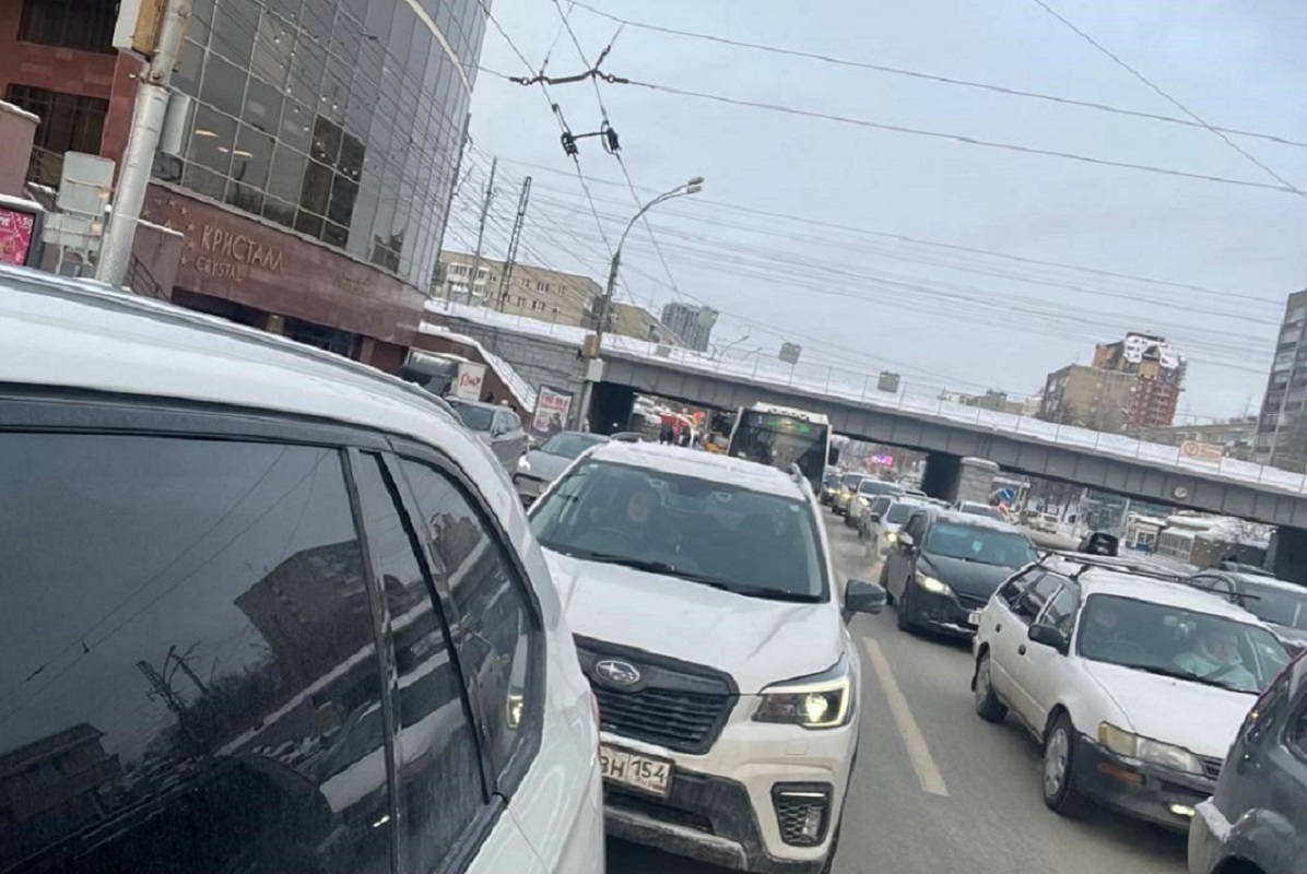 Грузовик создал затор на самой оживленной улице Новосибирска