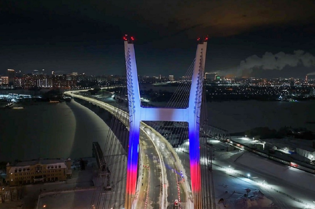 В Новосибирске открыли движение транспорта по четвертому мосту через Обь. Это состоялось по заявленному ранее Группа «ВИС» времени – в 23.50 15 декабря. В честь открытия 114-метровый пилон вантового моста окрасился в цвета российского флага.