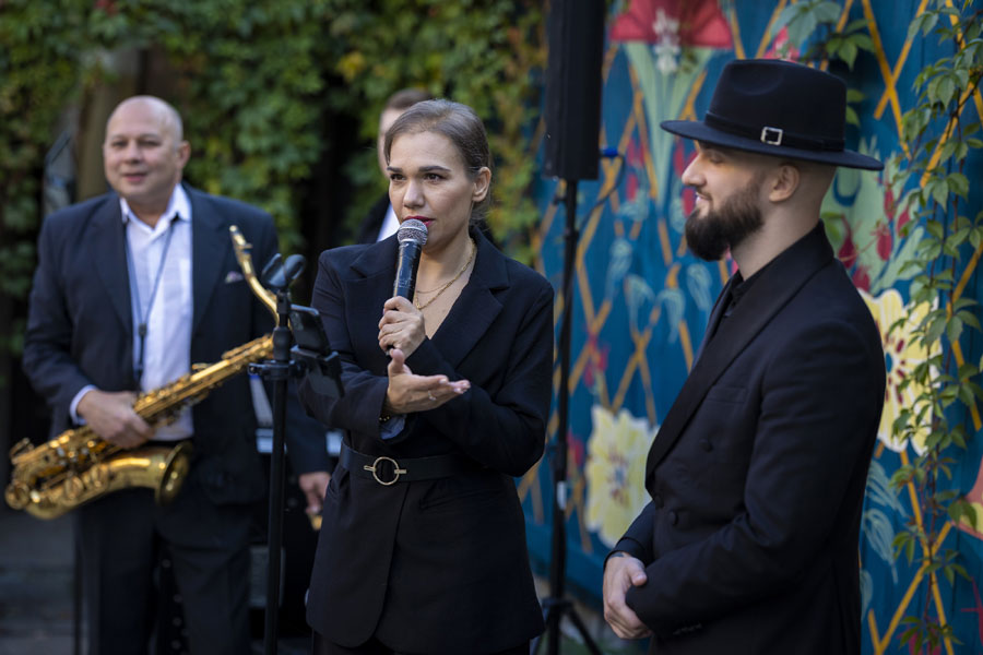 Большинство гостей пришли на выставку в морском стиле. А музыкальная группа и погода придали проекту особую «киношную» атмосферу.