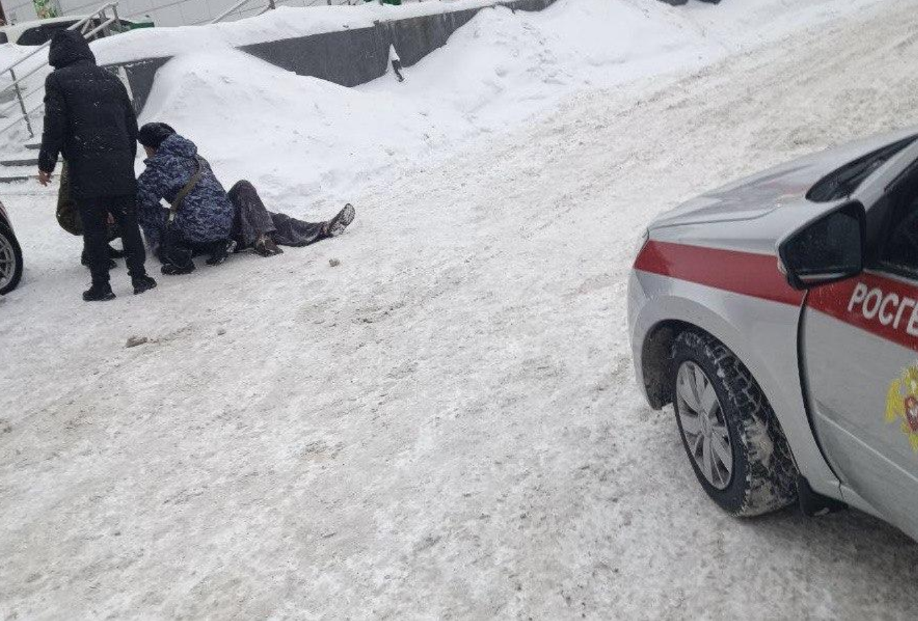 В Новосибирске двое сотрудников Росгвардии оказали своевременную помощь женщине, потерявшей сознание и переставшей дышать прямо на улице Сухарной