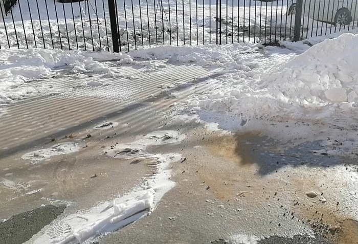 Первая авария произошла 10 января. Тогда повредили трубу холодного водоснабжения. Вода затопила парковку и стекала вниз по улице в сторону реки Ельцовки. Почти сутки жильцы сидели без воды.