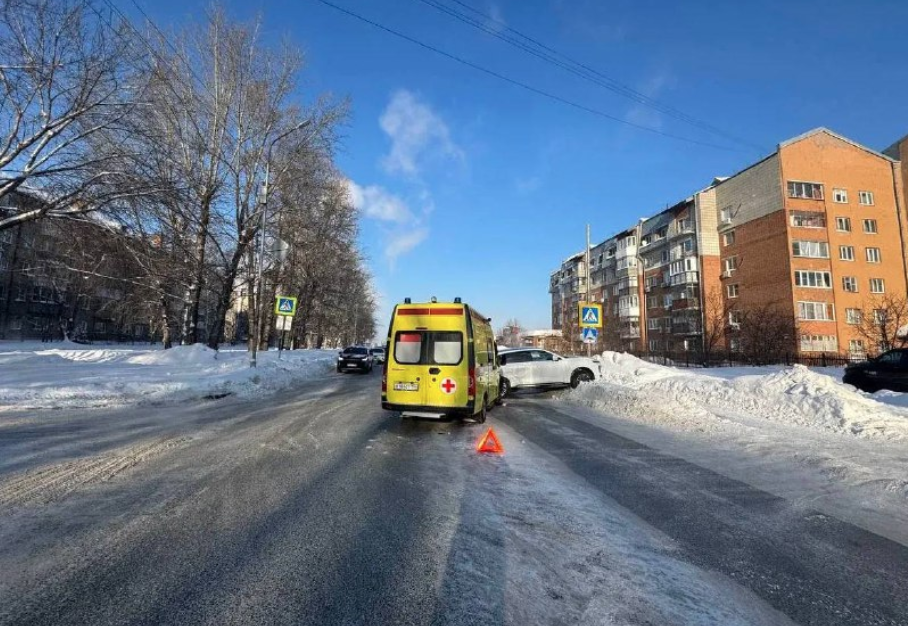 Пострадали двое: скорая помощь столкнулась с легковушкой на Приморской в Новосибирске