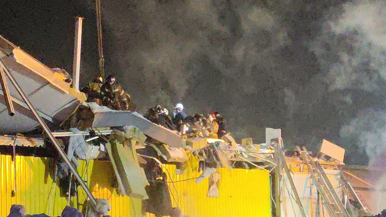 По предварительным данным, под завалами остается мужчина. Спасатели регулярно проводят минуту тишины, чтобы услышать человека под грудой металлоконструкций.