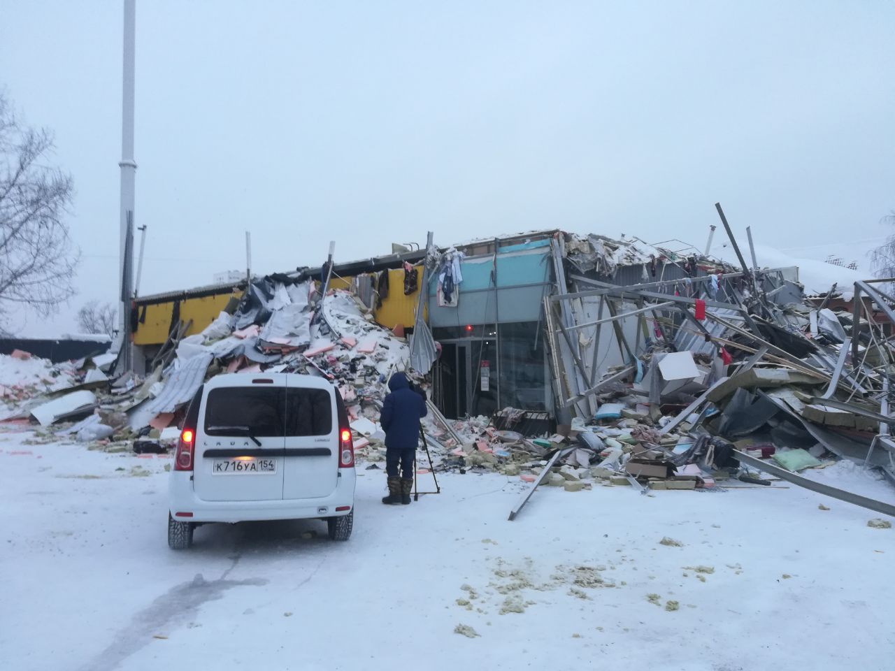 В Новосибирске продолжаются аварийно-спасательные работы на месте обвала крыши торгового центра на улице Наумова, 26