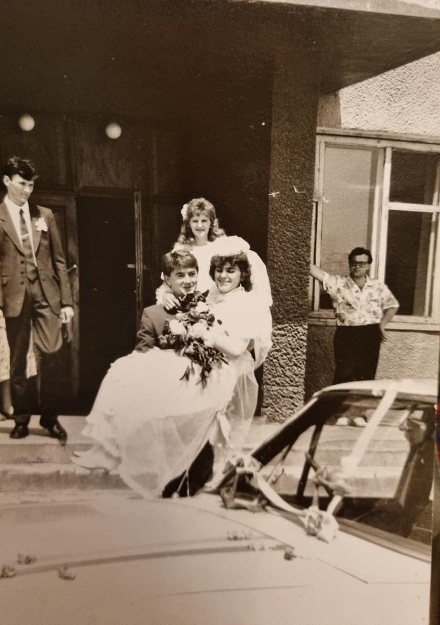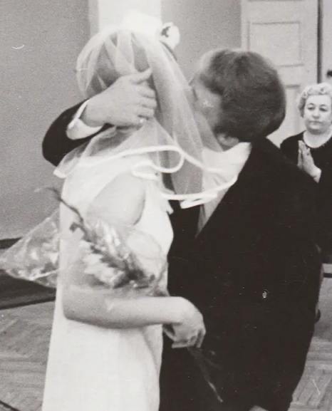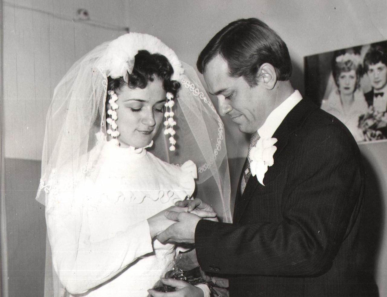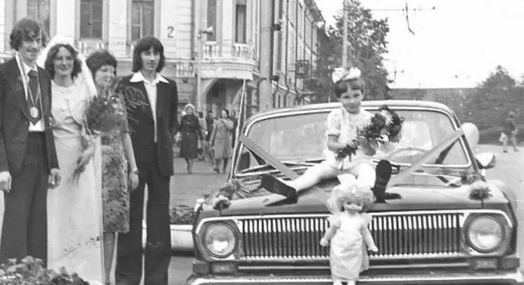 Пара встретилась в институте и решила связать свои судьбы. На свадьбу они прибыли на престижной «Волге» ГАЗ-21.