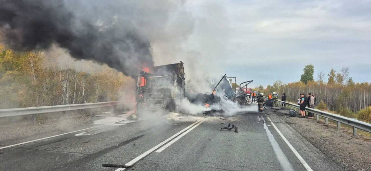 Осенью 2025 года на федеральной трассе Р-254 случилось серьезное ДТП: лобовое столкновение грузовиков с микроавтобусом марки «Газель» вызвало большой пожар и серию взрывов топливных баков.