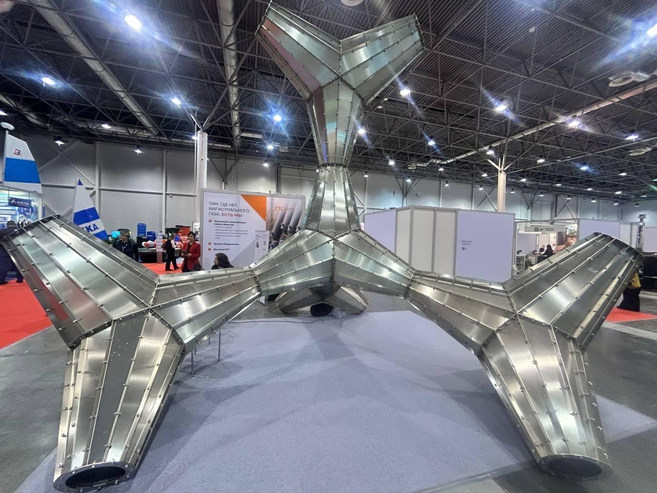 На выставке представлены новые технологии, строительные системы и оборудование. Среди самых заметных экспонатов — урбан-скульптура «Богомол» из нержавеющей стали высотой 4,2 метров и весом 800 килограммов. Она символизирует модульность и адаптивность архитектурных решений.