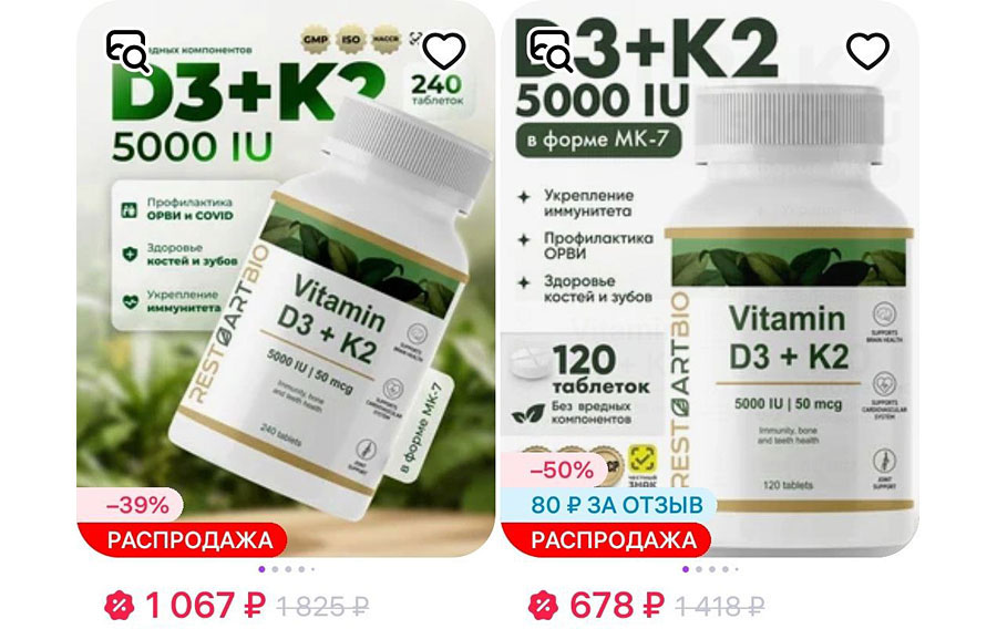 • Российские бренды: «Эвалар», R-line, Unlimited, Vision, Imuali, Restartbio, «Доктор Море», Liposomal.