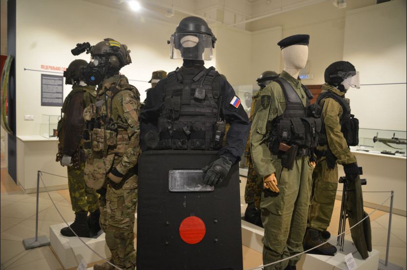 Экспозиция представляет вниманию посетителей более 200 уникальных экспонатов, отражающих эволюцию российских спецслужб через изменение их формы и экипировки. Среди представленных экспонатов – 46 комплектов униформы, принадлежащих разным эпохам, от приказов Тайных дел и корпуса жандармерии до современности. Отдельные предметы рассказывают личные истории владельцев, такие как мундир лейтенанта Николая Лавриненко, участвовавшего в Параде Победы 1945 года.