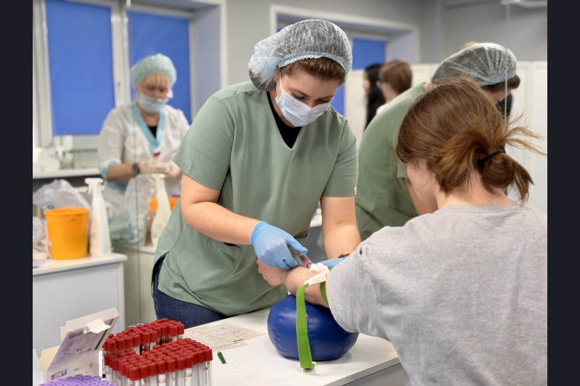 Медики поликлиники № 1 работают в университете усиленным составом: по два специалиста на заборе крови, на ЭКГ. Желающих пройти репродуктивную диспансеризацию дополнительно консультируют гинеколог и уролог-андролог. Первый этап диспансеризации можно пройти практически без отрыва от учебного процесса.