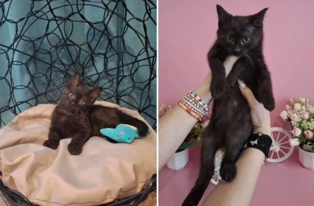 Черный котенок Марсик с атаксией нашел временный приют благодаря неравнодушным волонтерам