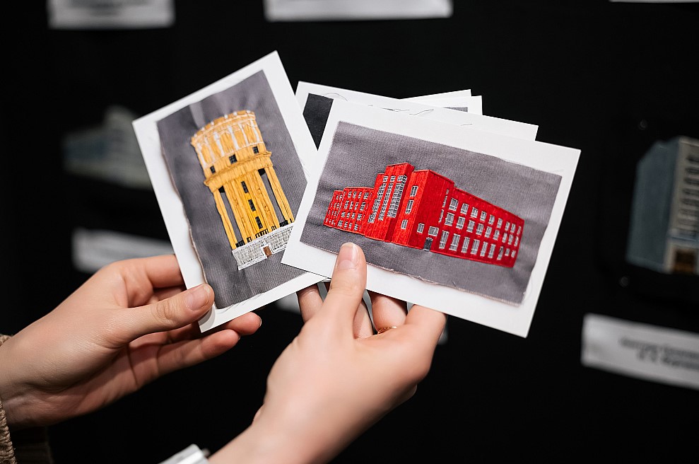 Новый выставочный проект Саши Браулова «Стежки прогресса» стартовал в прошлом году в Екатеринбурге. Партнером проекта в Новосибирске выступила девелоперская компания Брусника. Для размещения экспозиции был выбран один знаковых объектов нашего города – водонапорная башня в Ленинском районе, построенная в 1935 году в стиле конструктивизма. Сейчас это креативный центр «Башня». В Екатеринбурге в 2025 году выставка также проходила в одном из главных символов конструктивизма, объекте культурного наследия федерального значения – Белой башне.