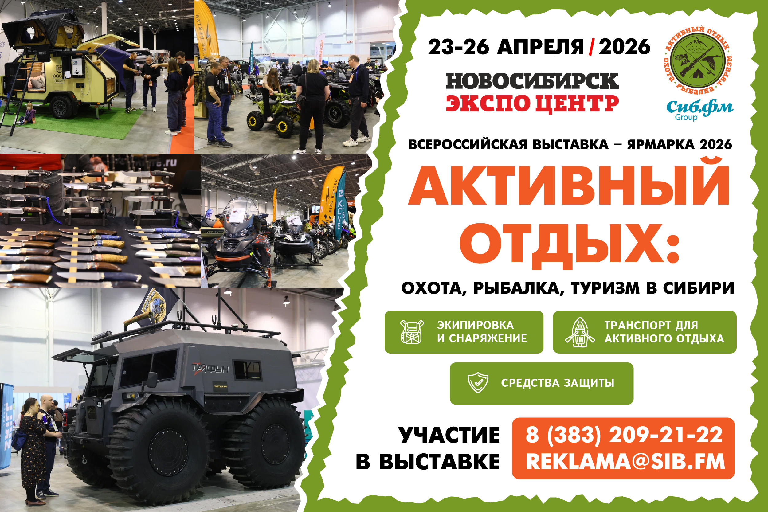С 23 по 26 апреля 2026 года в новосибирском «Экспоцентре» пройдет крупнейшая специализированная выставка «Активный отдых: охота, рыбалка, туризм в Сибири».
