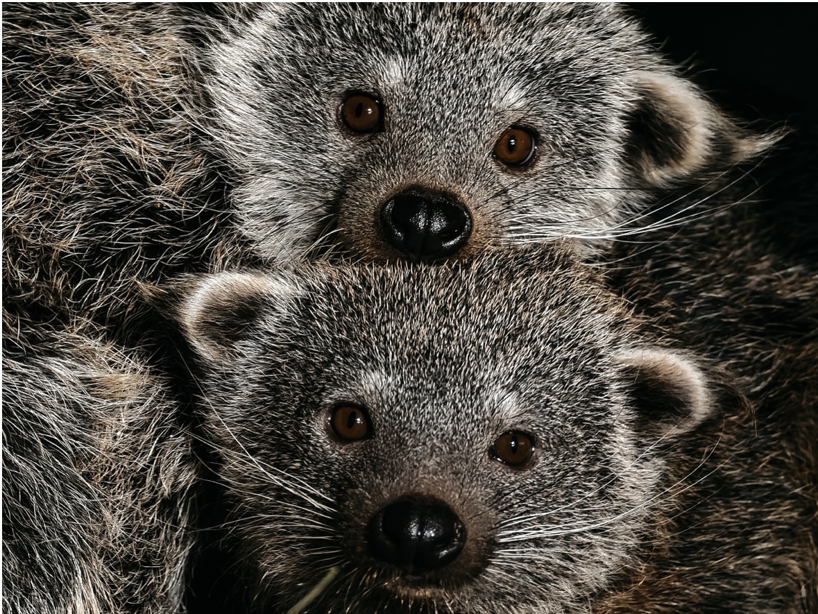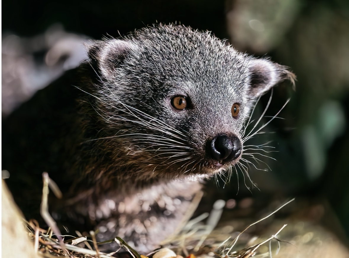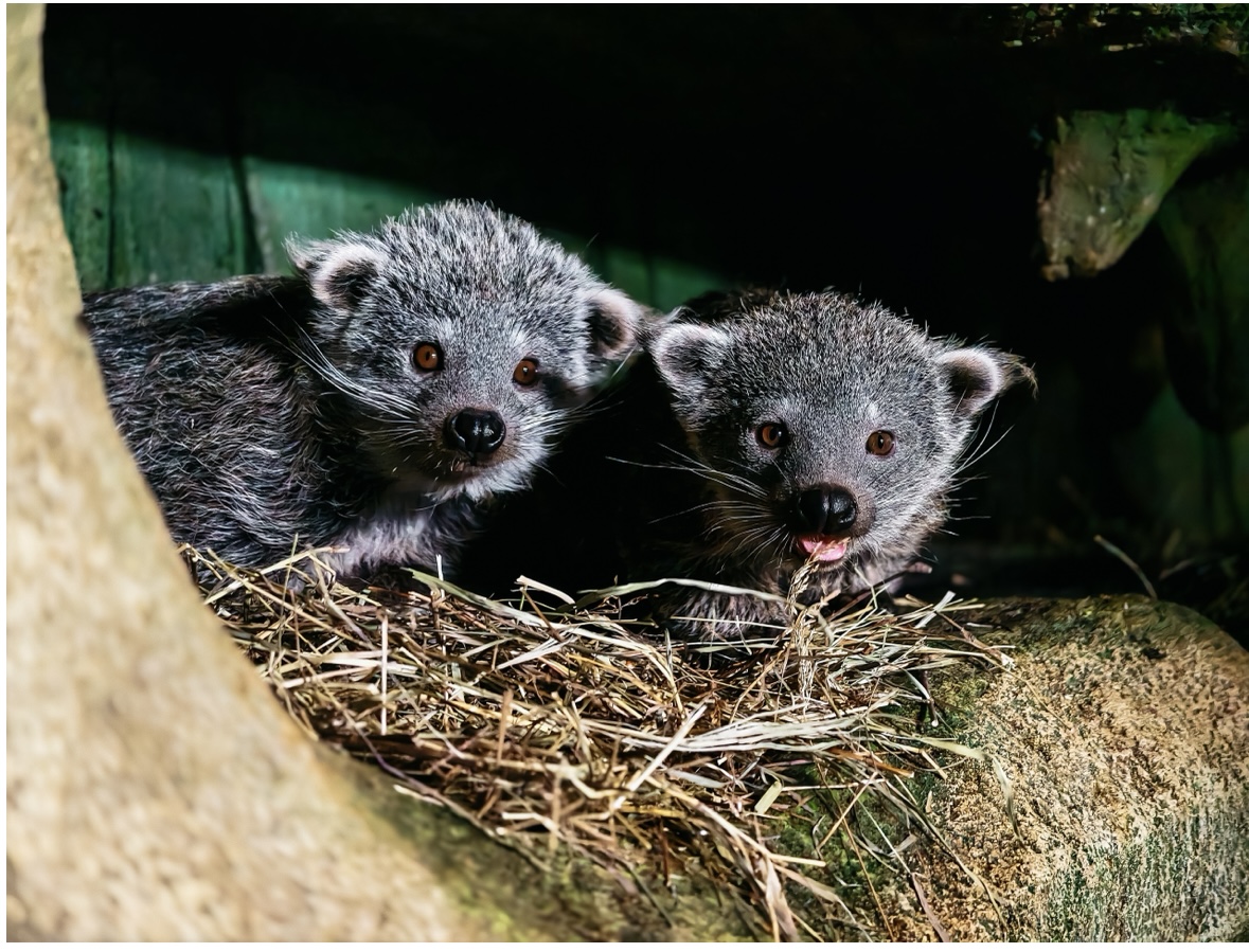 В канун Нового года, 25 декабря 2025 года, в семье бинтуронгов — хищников, которых за внешнее сходство называют «кошачьими медведями», — произошло пополнение. На свет появились трое детёнышей: два самца и одна самка. Это уже второе прибавление в этом семействе за год: предыдущее случилось в июне, когда родились ещё два малыша.