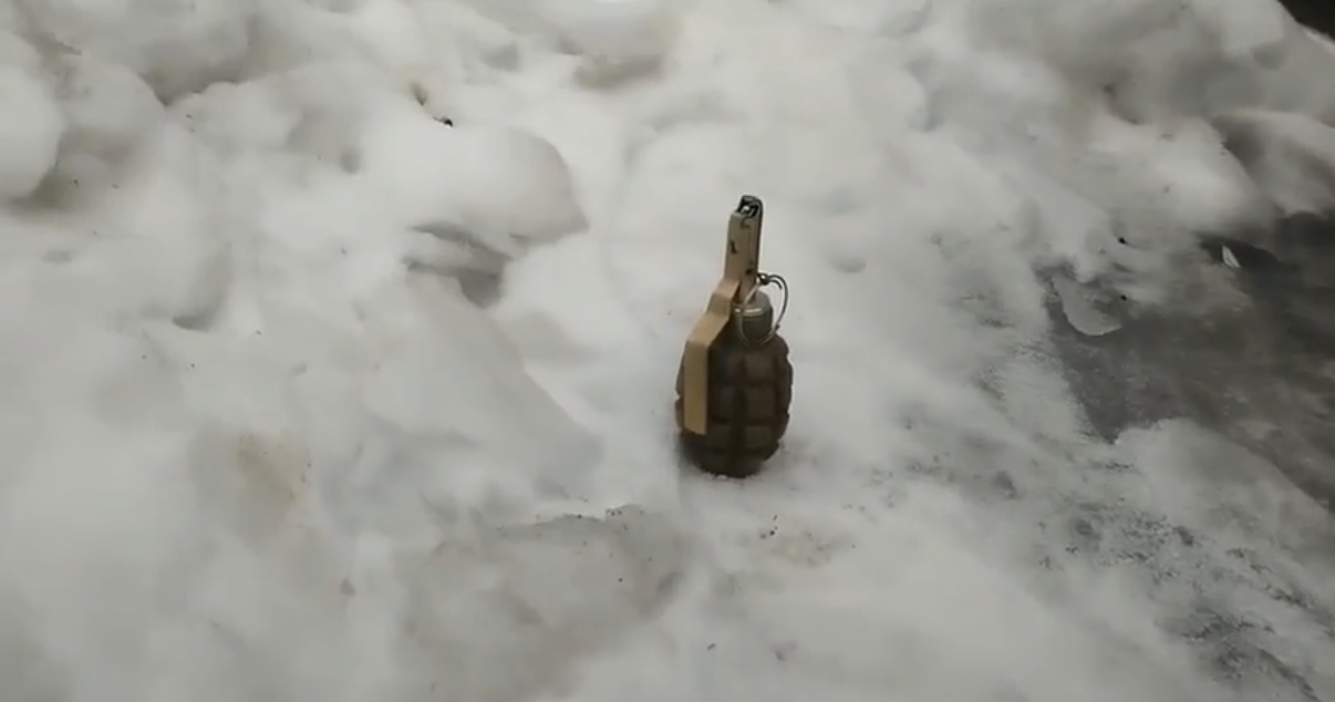 «Короче, вот 23 марта сегодня. Больница наша, остановка... Граната. Неизвестно какая, конечно, но граната», — сообщает автор видео.