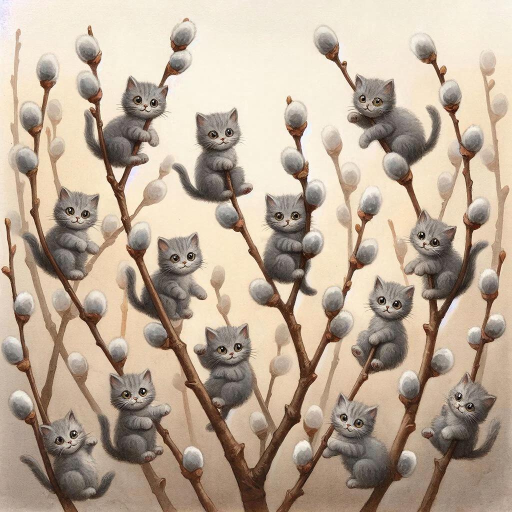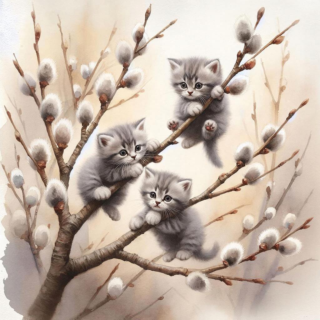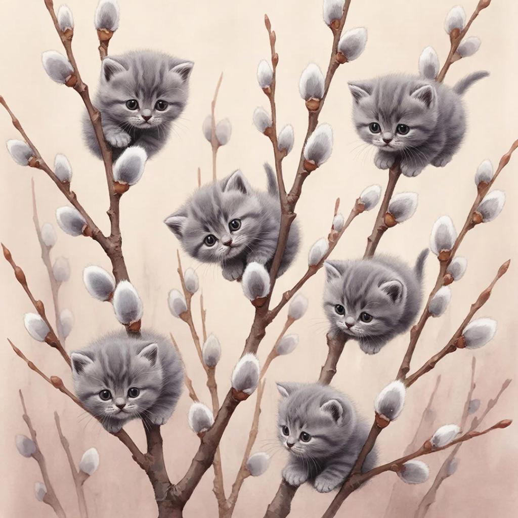Почему же вербу сравнивают именно с котиками? Оказывается, причина проста: серенькие почки вербы удивительно напоминают мягкую шерсть кошек. Особенно забавно смотрятся фотографии, где настоящие котики позируют рядом с пучками вербы, будто соревнуясь, кто пушистее. Многие художники и фотографы используют этот забавный контраст, создавая милые открытки и рисунки, которые поднимают настроение в праздничный день.