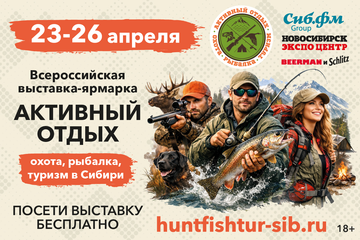 С 23 по 26 апреля 2026 года в новосибирском «Экспоцентре» состоится Всероссийская выставка-ярмарка «Активный отдых: охота, рыбалка, туризм в Сибири».