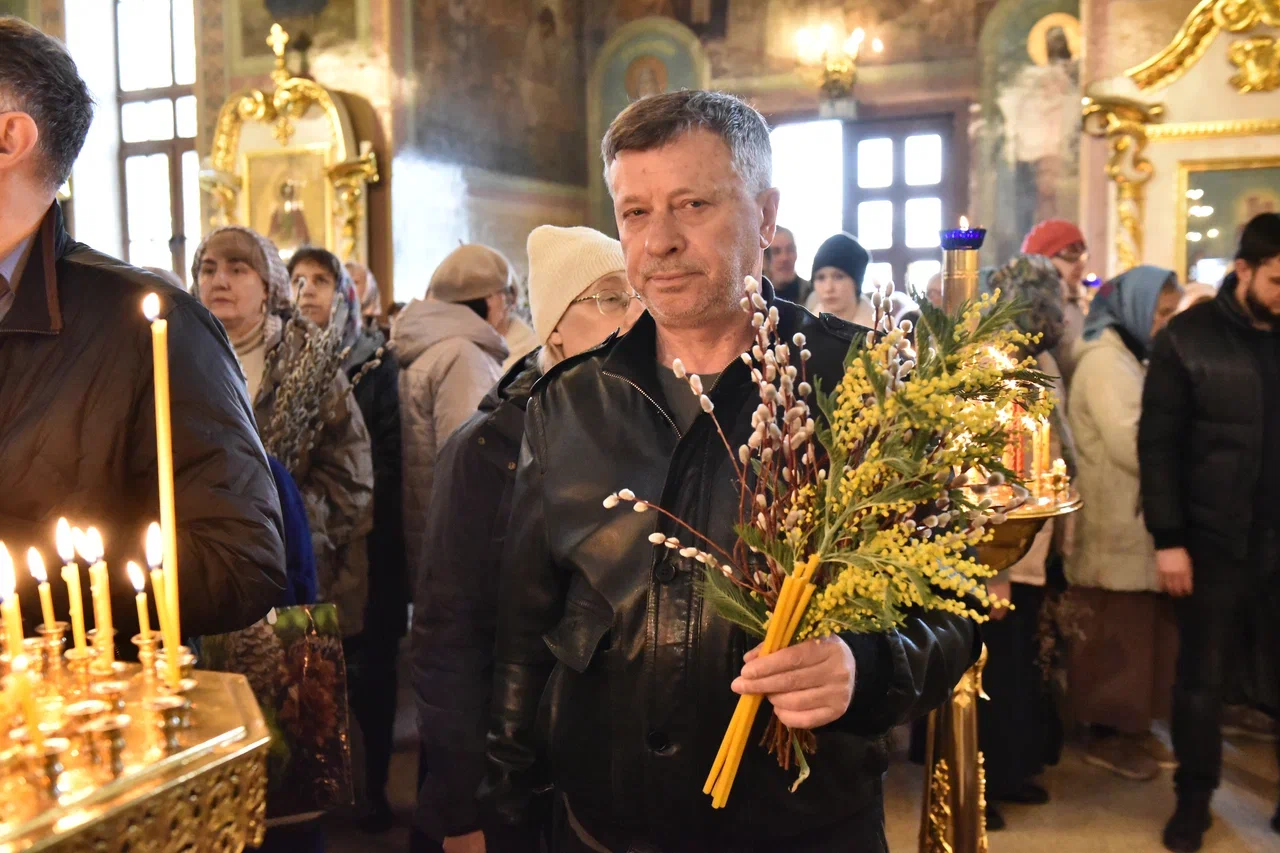 Внутри собора проходит особая служба, посвящённая воспоминанию входа Иисуса Христа в Иерусалим. Священники в праздничных облачениях читают молитвы, а кульминацией становится чин освящения вербы. Для православных верующих эти веточки — символ победы жизни над смертью и важный атрибут подготовки к Пасхе.