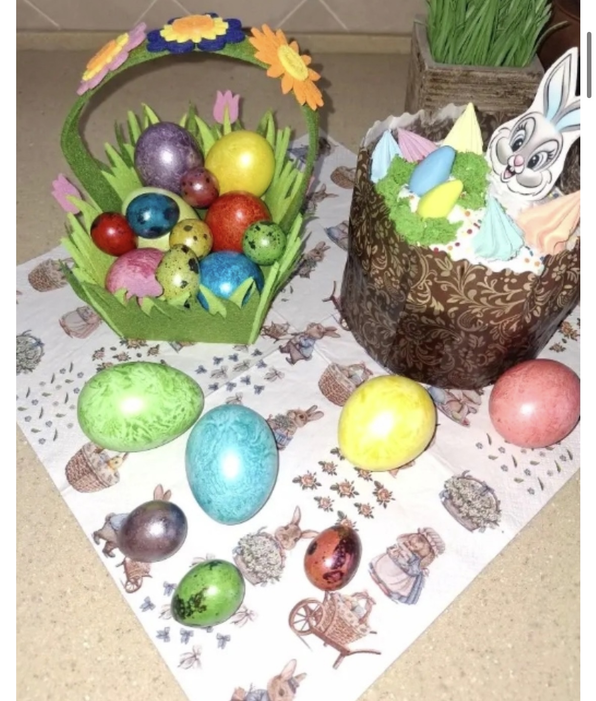 «Для нашей семьи подготовка к Пасхе — это особый ритуал. В этом году с детьми сделали «садовую» тему: украсили яйца росписью в виде цветов, а кулич посыпали лепестками сушёной клюквы. Получилось очень душевно», — написала читательница Елена из Октябрьского района.