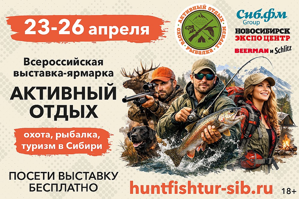 С 23 по 26 апреля 2026 года в новосибирском «Экспоцентре» состоится всероссийская выставка-ярмарка «Активный отдых: охота, рыбалка, туризм в Сибири».