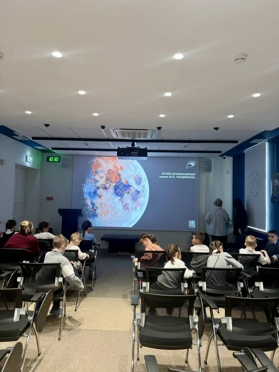 После экскурсии программа продолжилась в более неформальном формате: детям показали мультипликационные фильмы о космосе. А сотрудники прокуратуры города Владимир Мелентьев и Яна Рубан вручили каждому ребёнку сувениры с изображением планет.