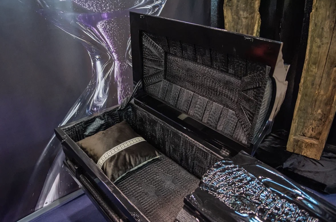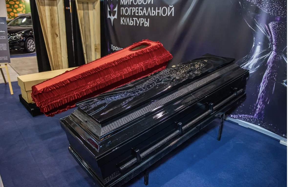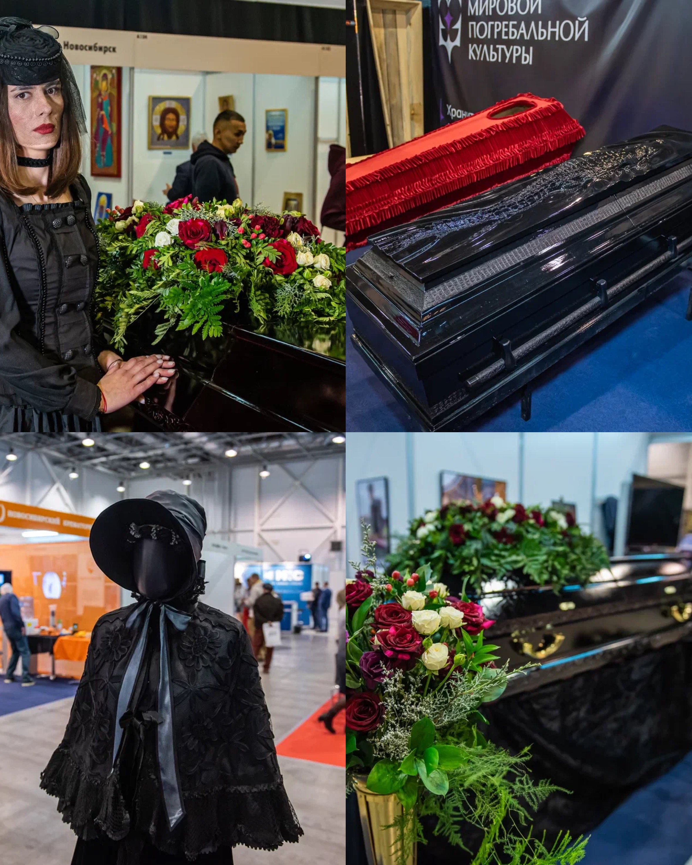 В новосибирском «Экспоцентре» открылась специализированная выставка «Сибирь Ритуал», традиционно собирающая как профессионалов похоронной отрасли, так и простых горожан. Нынешняя экспозиция запомнится посетителям надолго — производители решили удивить публику по-настоящему смелыми и даже шокирующими экспонатами.