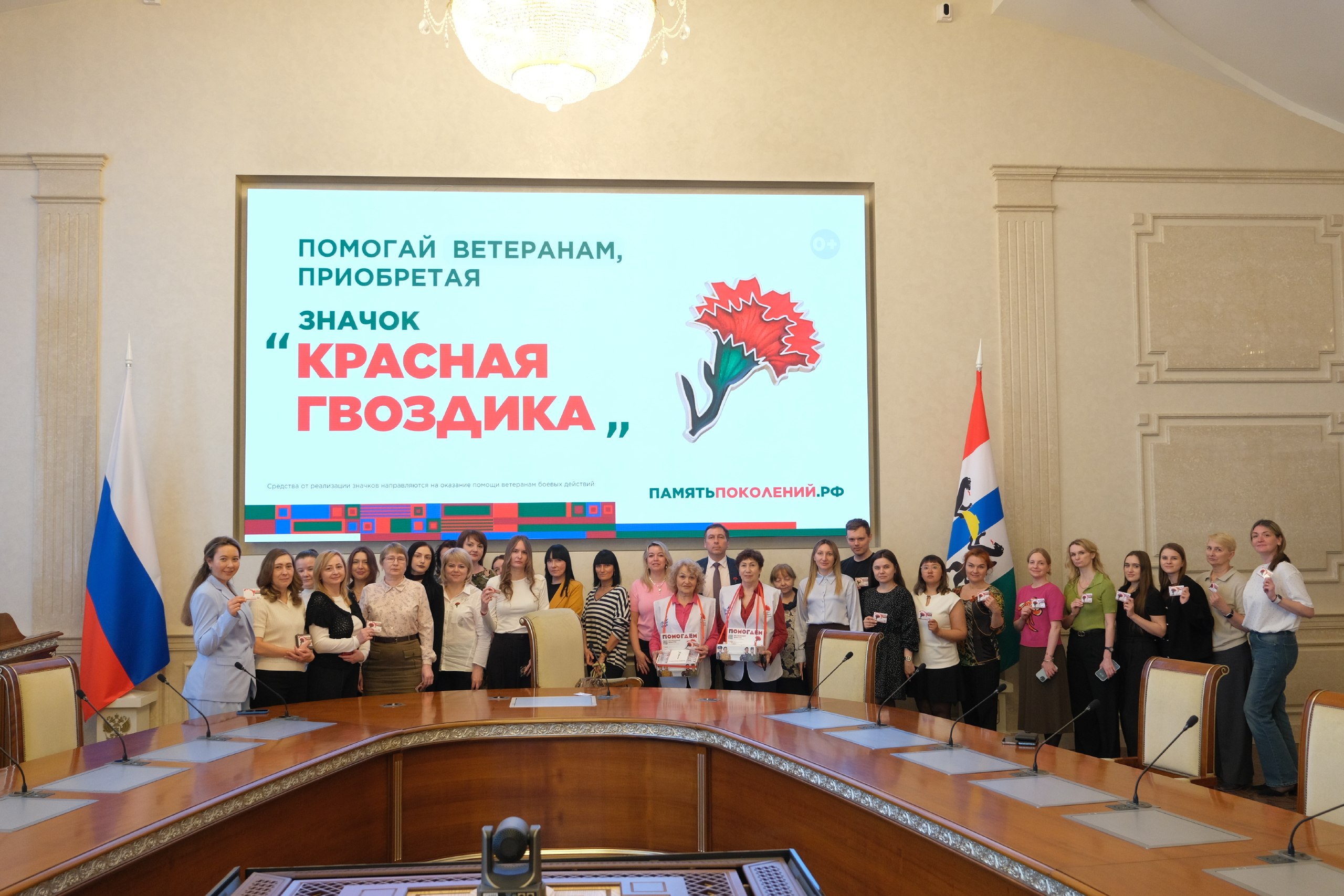 Коллектив министерства здравоохранения Новосибирской области вновь присоединился к благотворительной акции «Красная гвоздика», которая проводится по всей стране с 2015 года по инициативе фонда «Память поколений». Участникам движения «серебряные» волонтёры вручают небольшие значки из фетра в форме красных цветов.
