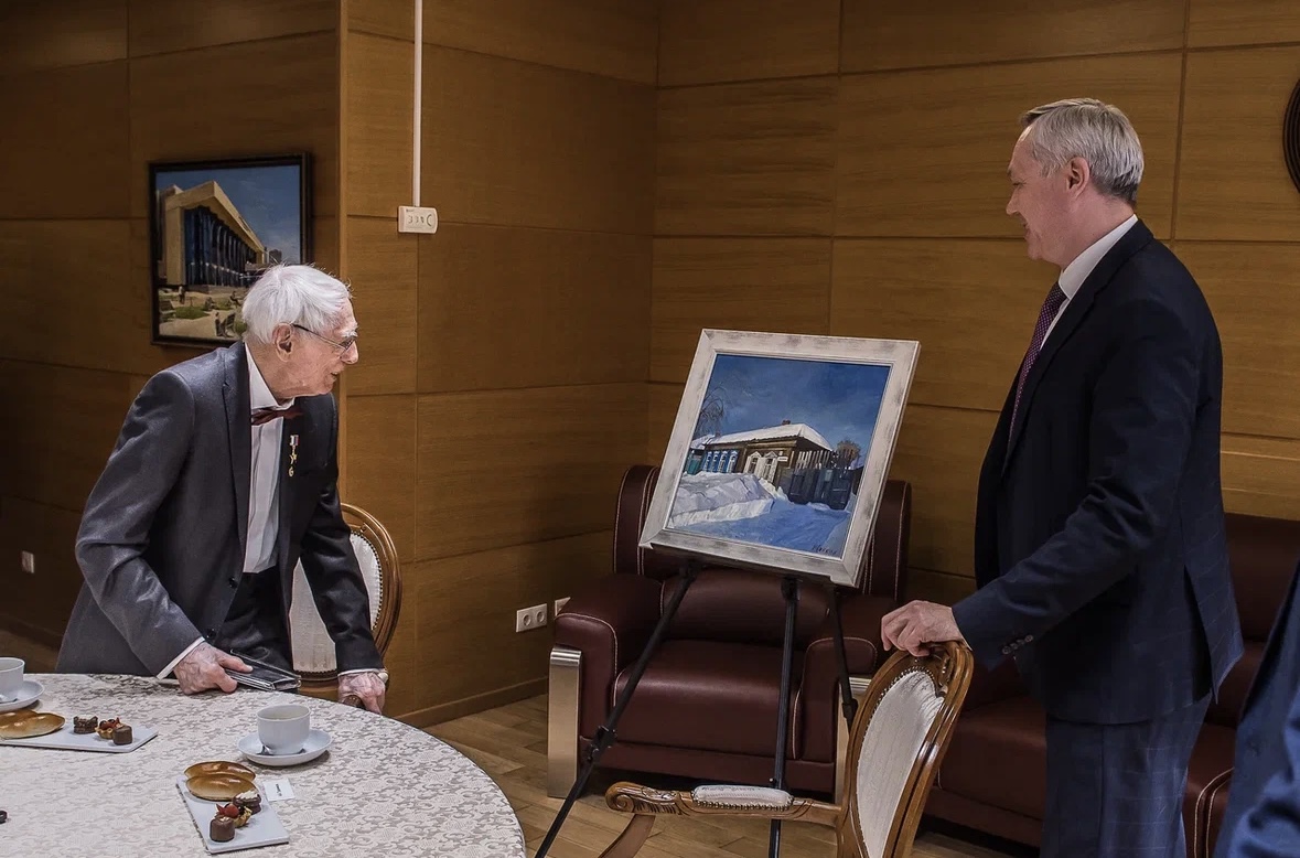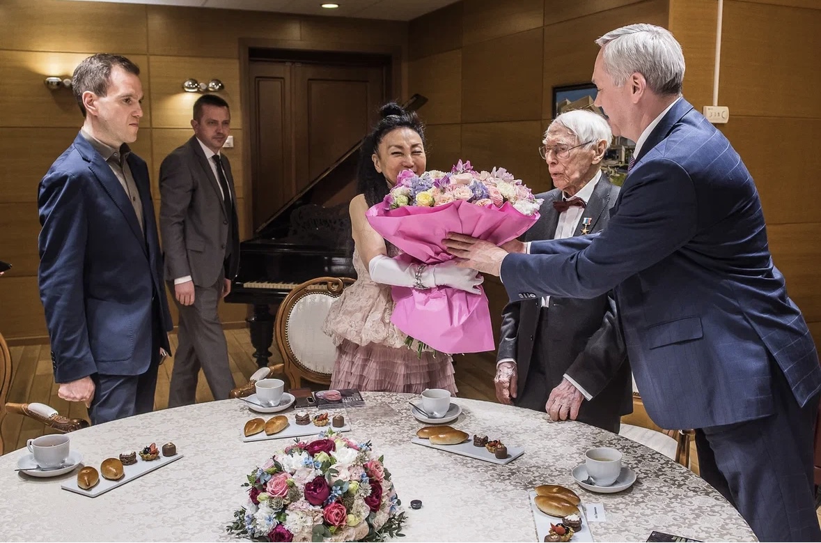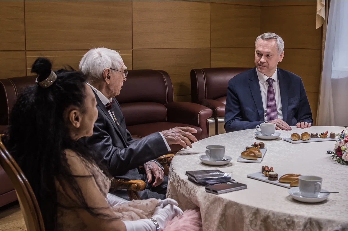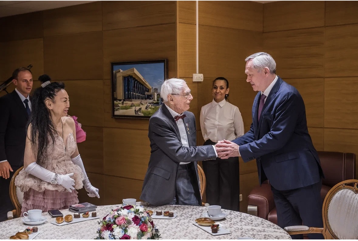 «Место силы»: 100-летний Александр Зацепин посетил Новосибирск и встретился с губернатором