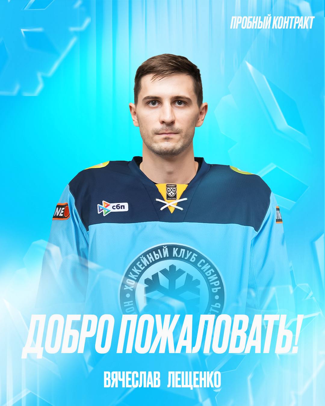 Новосибирский хоккейный клуб «Сибирь» подписал пробный контракт с нападающим Вячеславом Лещенко, который стал серебряным призером Молодежного чемпионата мира 2015 года.