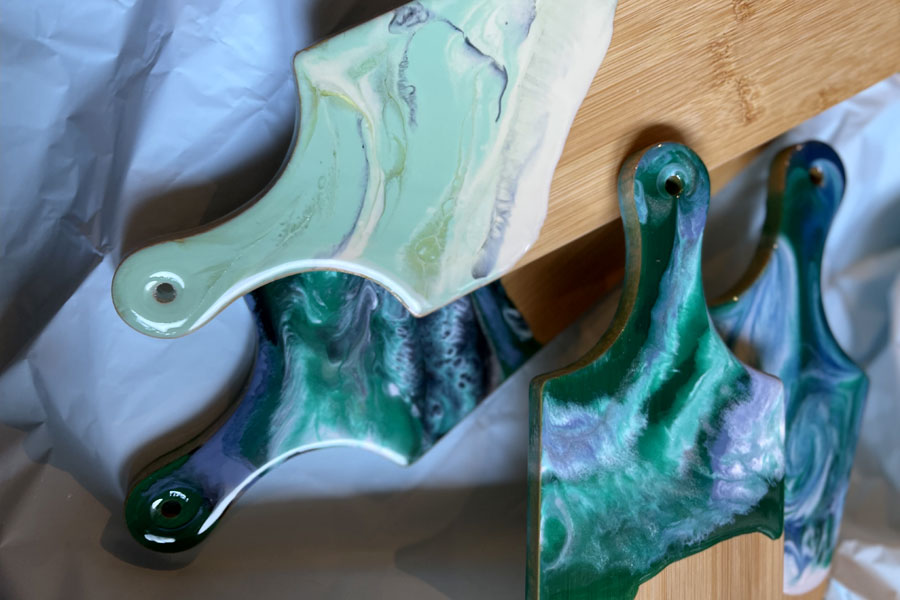 – Изначально я пришла к обычной живописи – классическим путем. С детства любила творить, шить куклам одежду, рисовать наряды и интерьер для бумажных кукол, затем училась в художественной школе, потом шесть лет в архитектурно-художественной академии. А однажды я случайно увидела, как художники работают с эпоксидной смолой. Это было похоже на магию: жидкие потоки превращались в глубокие блестящие поверхности, словно глянец моря. Меня затянуло, и я начала экспериментировать в этом направлении.