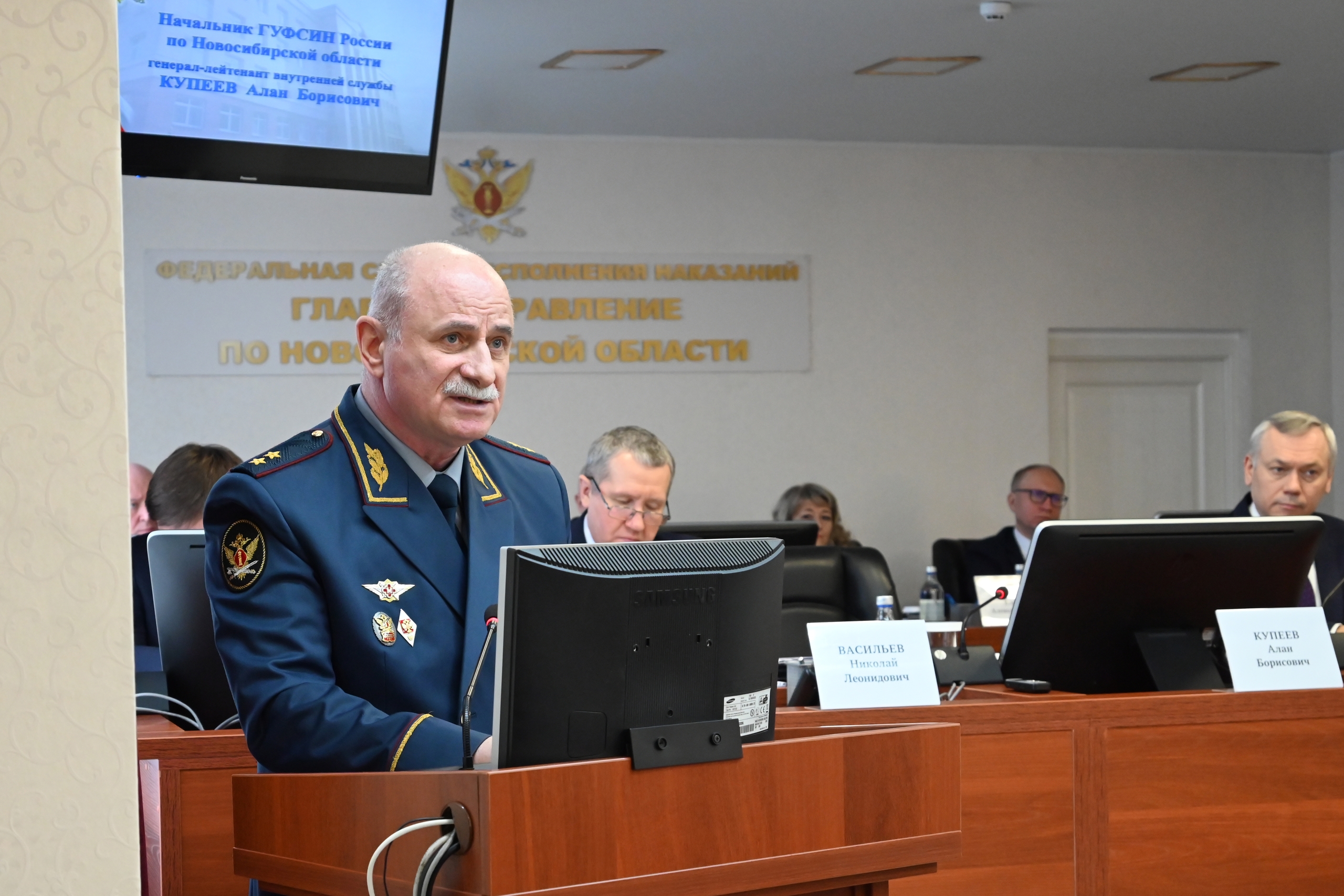 В Главном управлении Федеральной службы исполнения наказаний (ГУФСИН) России по Новосибирской области прошло совещание, посвященное итогам оперативной, финансовой и производственной деятельности ведомства за прошедший 2025 год. Заседание возглавил начальник ГУФСИН генерал-лейтенант внутренней службы Алан Купеев совместно с начальником Главного оперативного управления ФСИН России генерал-лейтенантом внутренней службы Николаем Васильевым. Участие в совещании приняли губернатор Новосибирской области Андрей Травников, а также представители госорганов, контрольных структур и силовых подразделений.