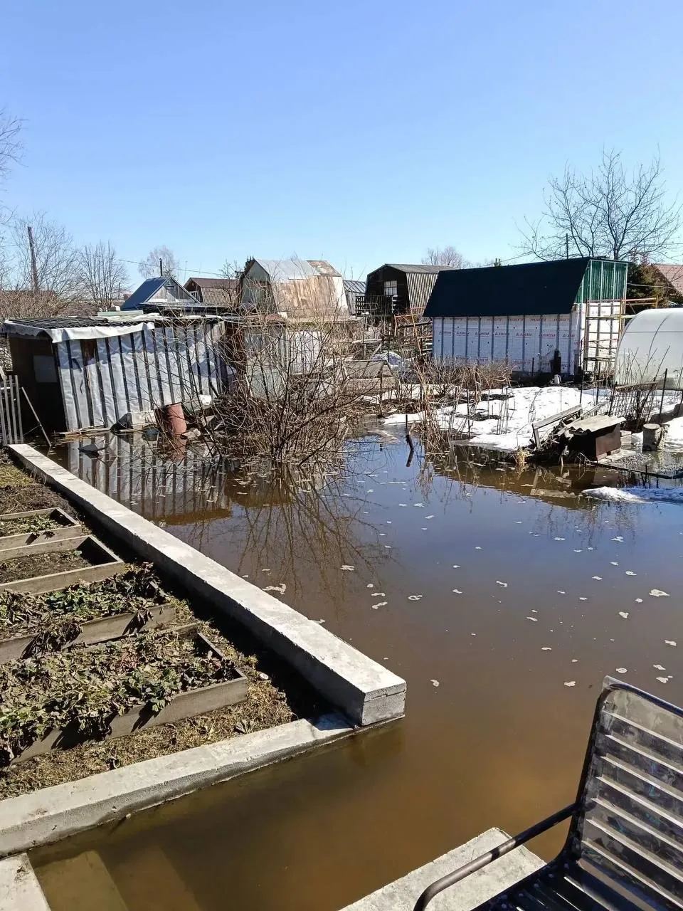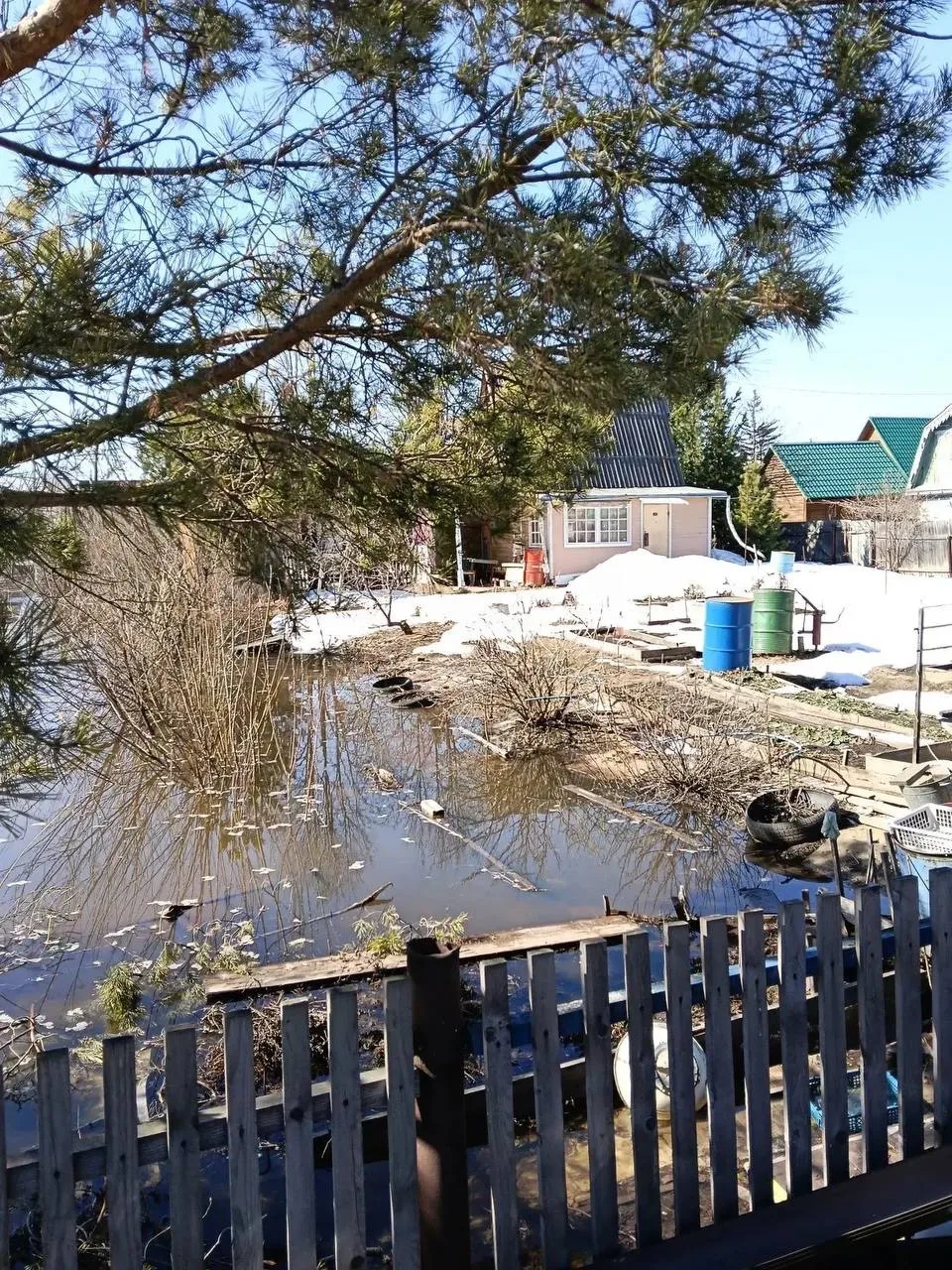 «Из-за большого количества снега этой зимой высокий паводок, топит дачи рядом с водой, уровень на 30 см больше, чем в прошлом году», - говорит Артём, прикладывая фото затопленного участка.