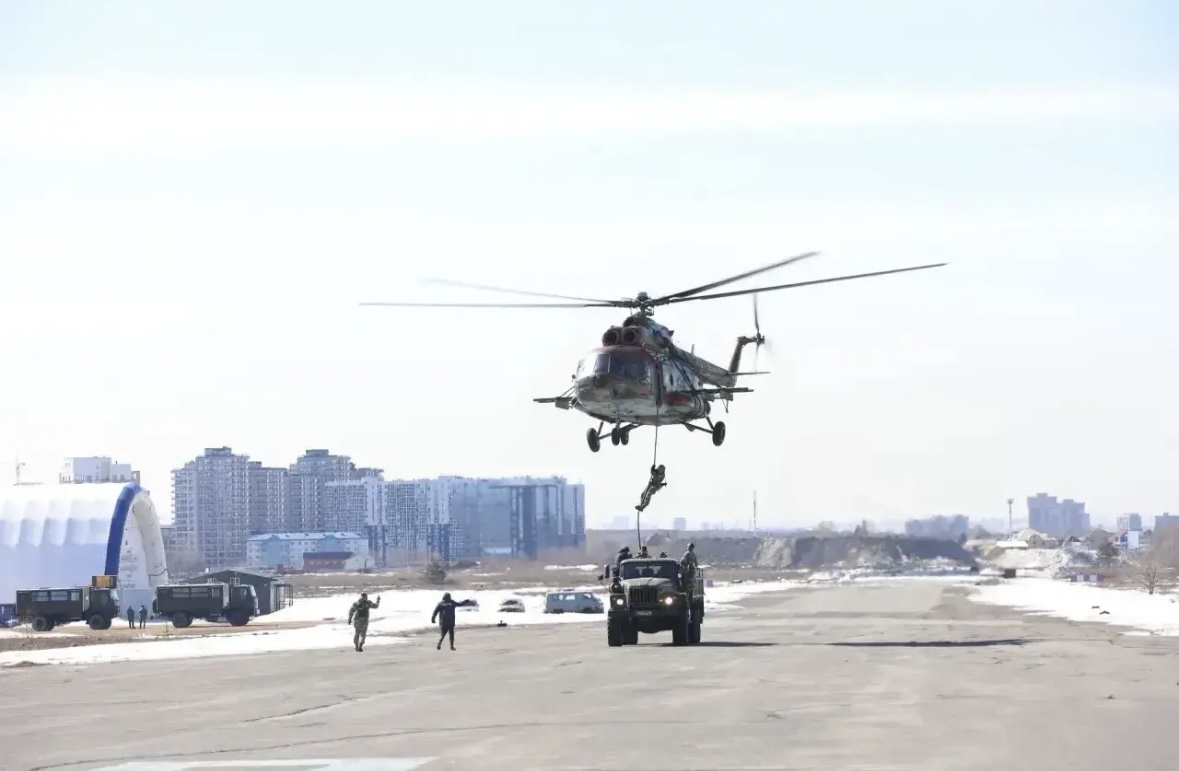 В Новосибирске курсанты Росгвардии десантировались с Ми-8 без парашютов