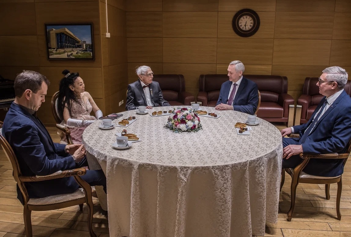 Особый момент поездки — встреча маэстро с губернатором Новосибирской области Андреем Травниковым. Фотокорреспондент издания Денис Винокуров запечатлел тёплую и одновременно торжественную атмосферу этих переговоров. На снимках видно, как Александр Сергеевич, несмотря на почтенный возраст, бодро пожимает руку главе региона, а также сосредоточенно подписывает памятные издания под собственные музыкальные произведения.